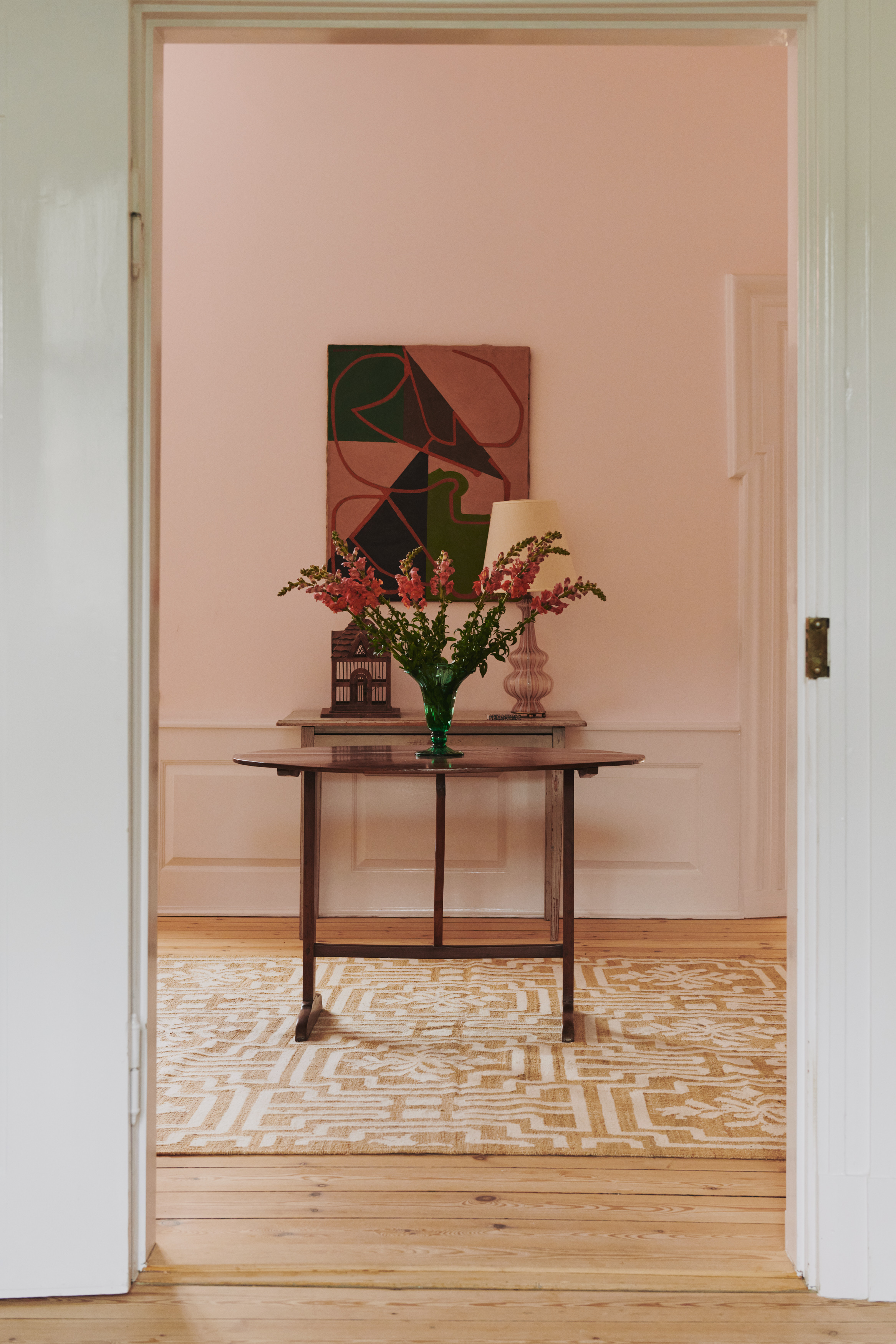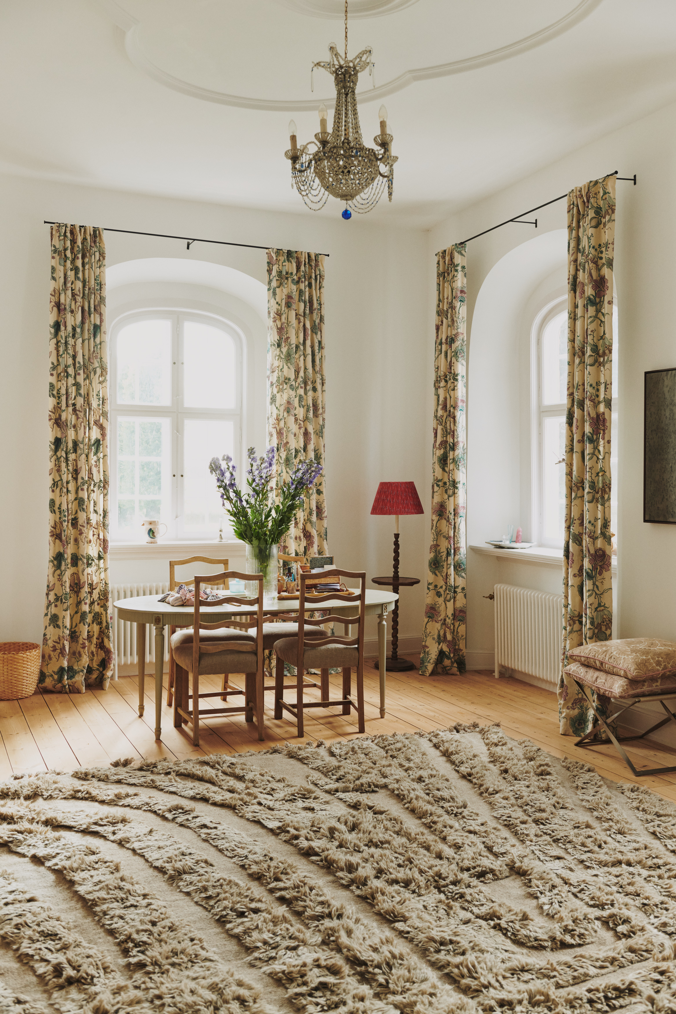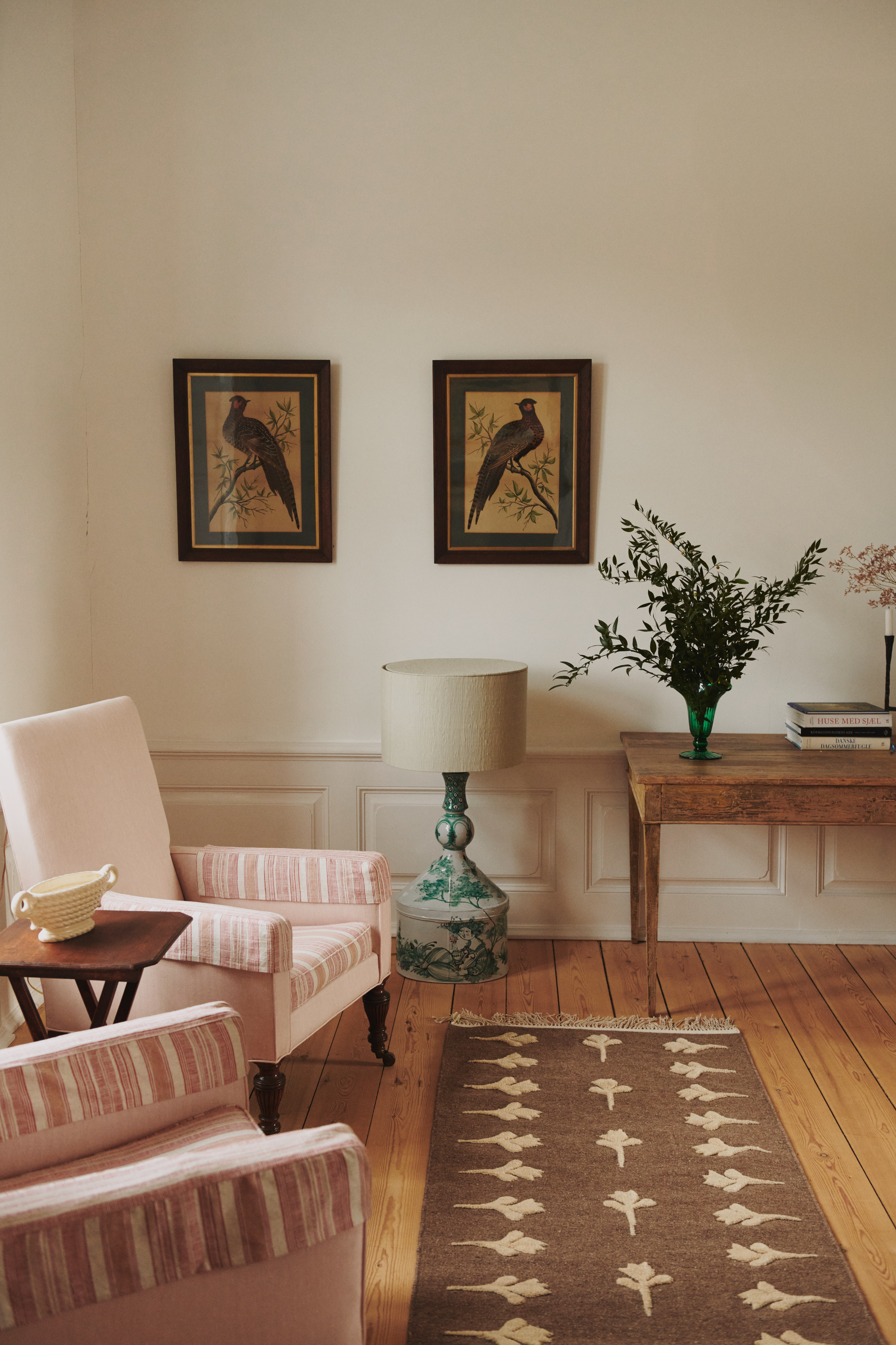 The shoot unfolded slowly, room by room, capturing the tone of the space rather than staging it. Plaster-washed walls, softened wood elements, and curated furniture pieces set a gentle rhythm throughout the home, while small details — fresh stems in a low vessel, stacks of design books, a favourite chair near the window — revealed traces of daily life.