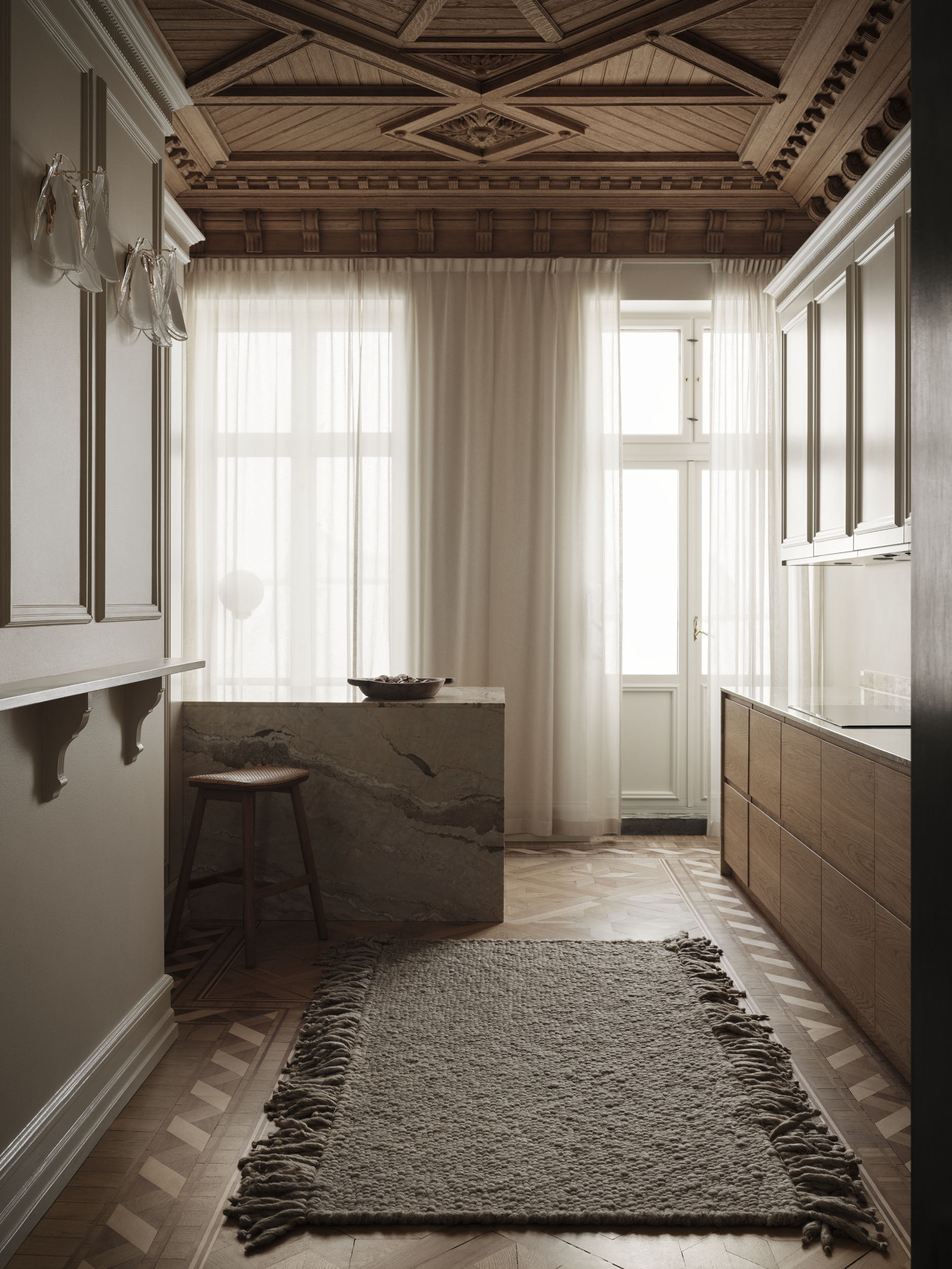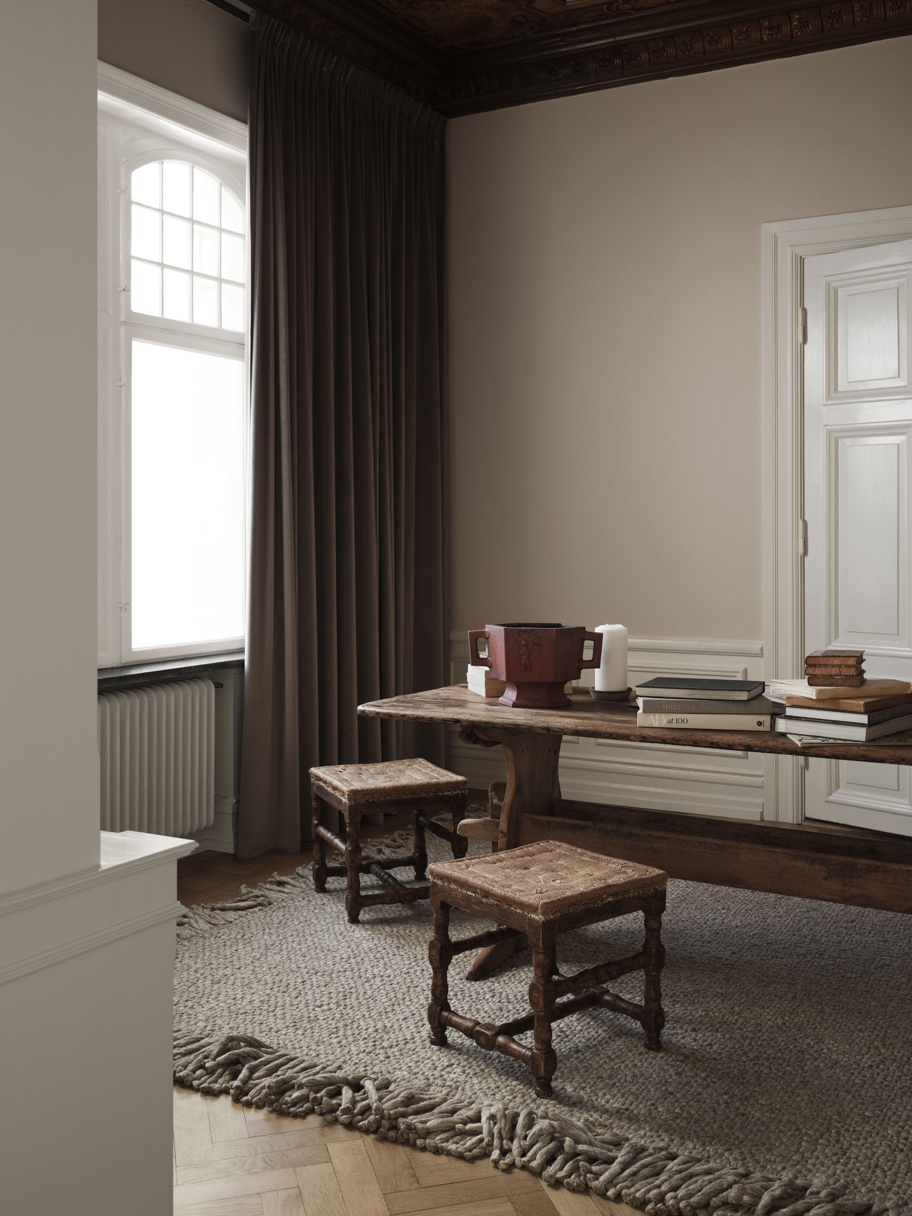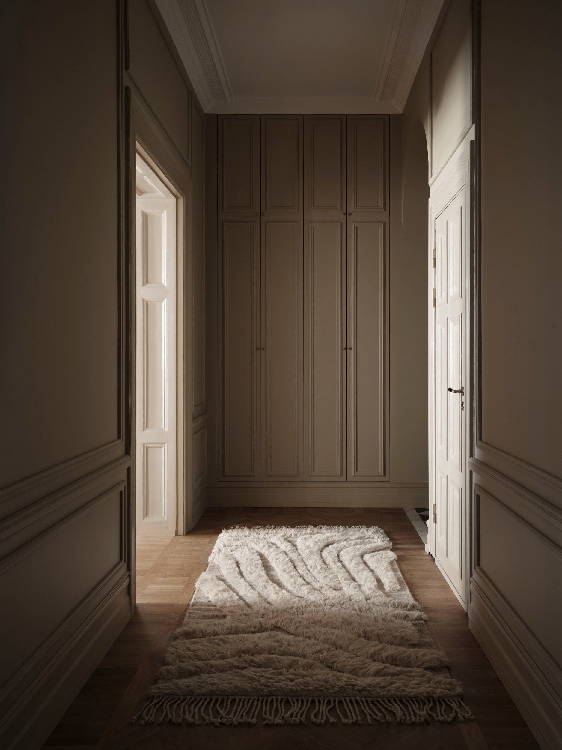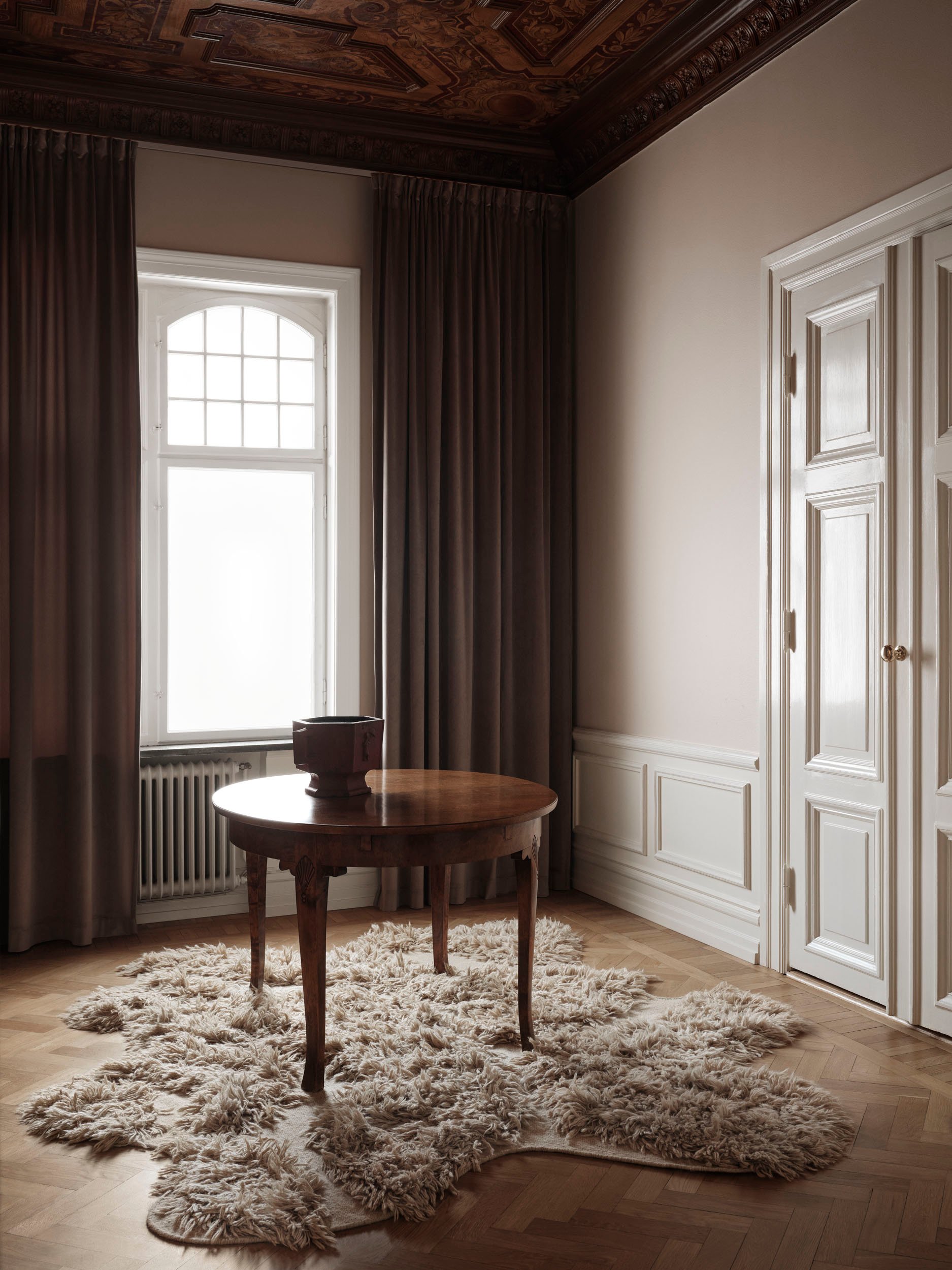 At Cappelen Dimyr, we love to explore how our rugs come alive in different architectural settings. For our Malmö shoot, we found a majestic apartment with details that look to a distant past. The newly renovated home has kept all its beautiful details, but adding a modern kitchen, and furniture that belongs to the present. The perfect balancing act between tradition and modernity. Just like our rugs.