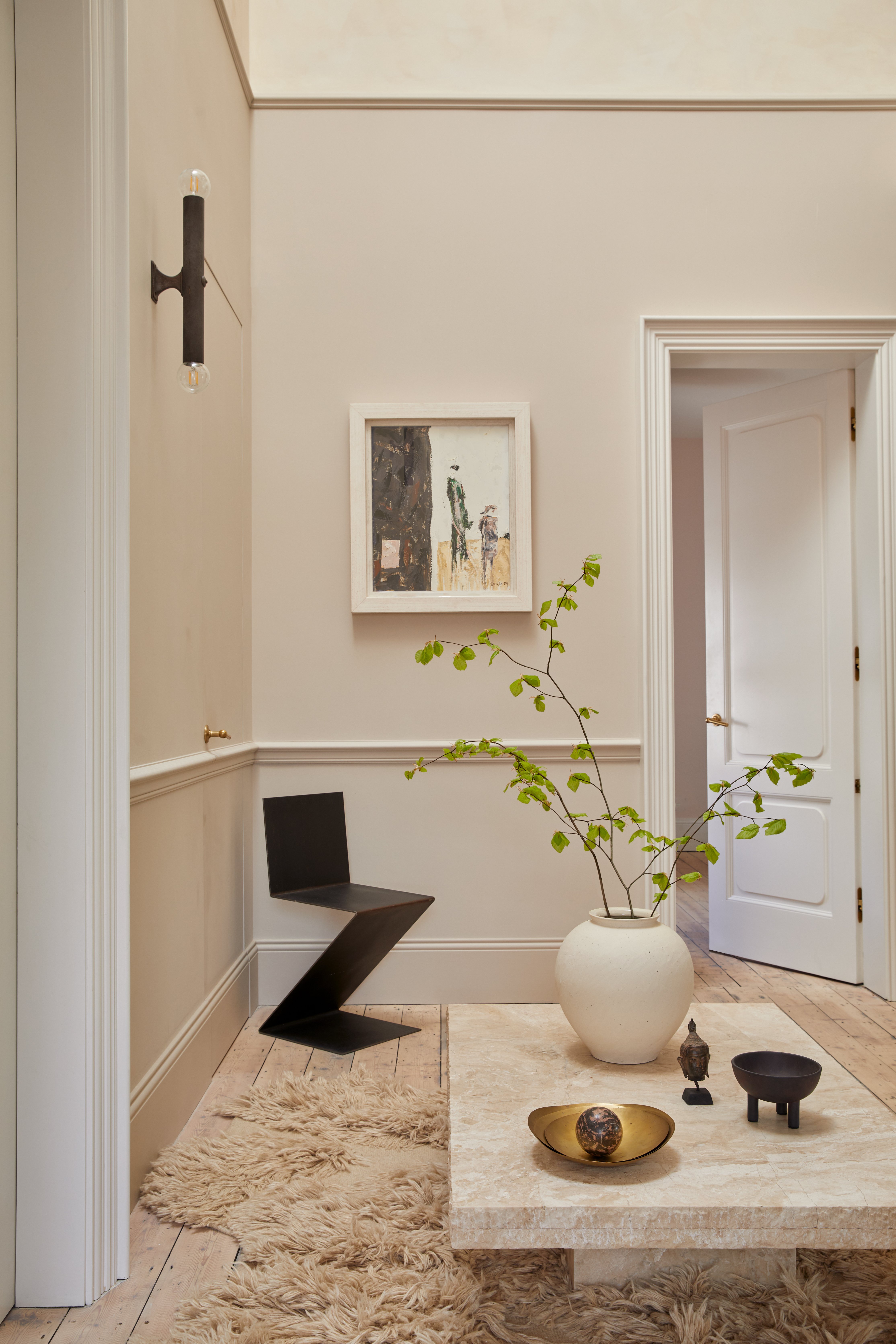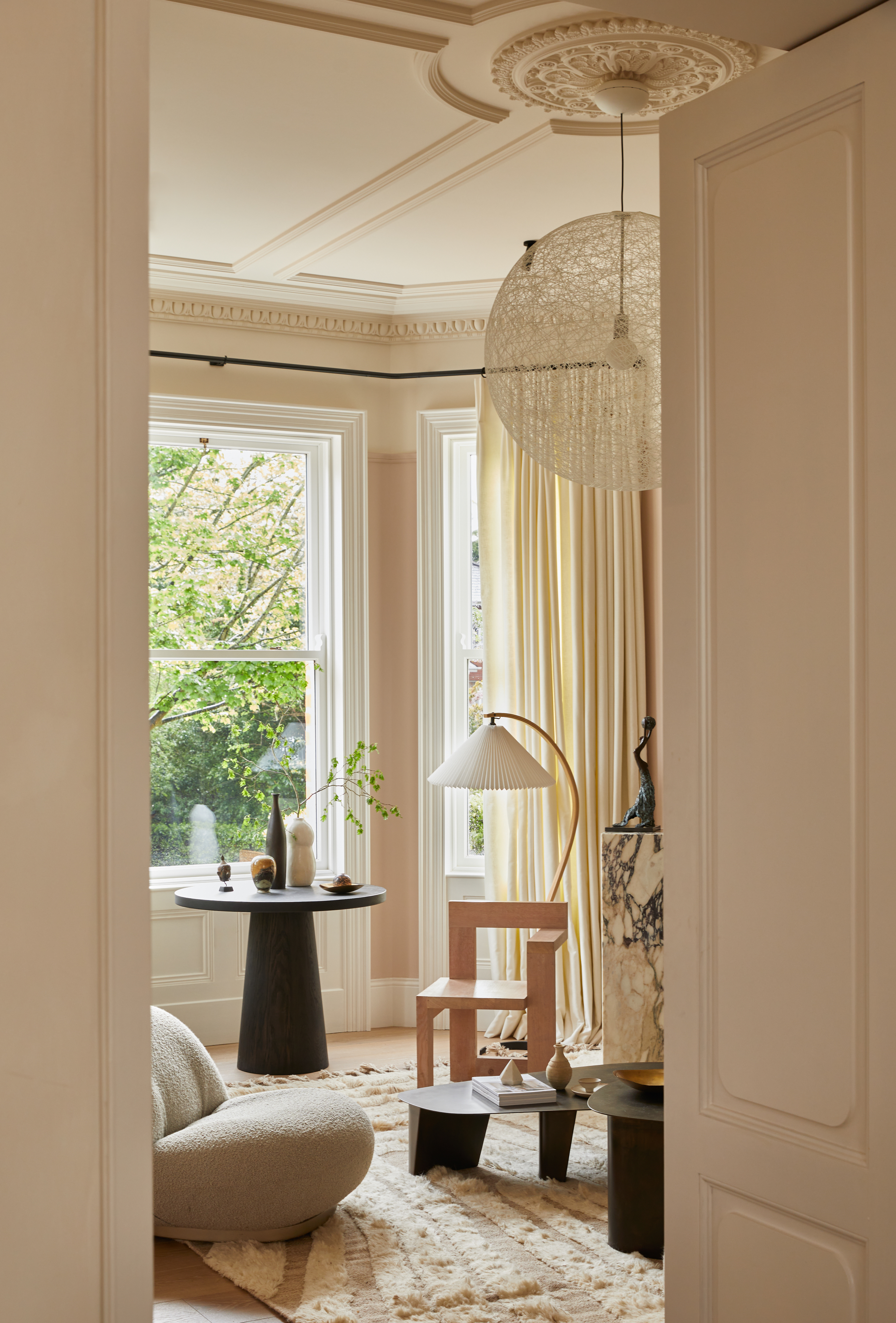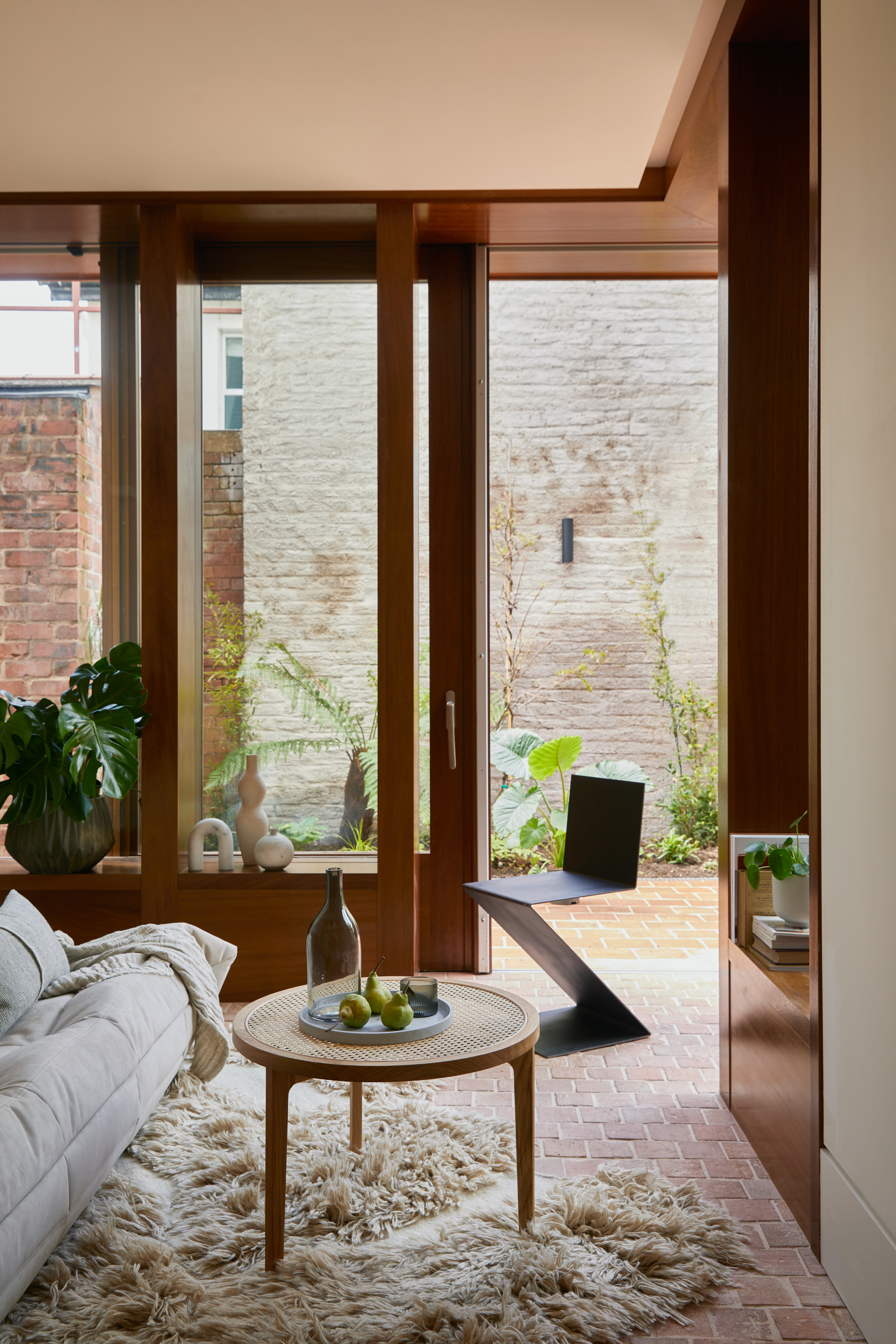 The Victorian home is adorned with Cappelen Dimyr rugs to create cozy corners and elevate each room. A sense of stillness is complemented by a simple material palette and neutral tones and textures, which reflects Hutch studios overall design approach.