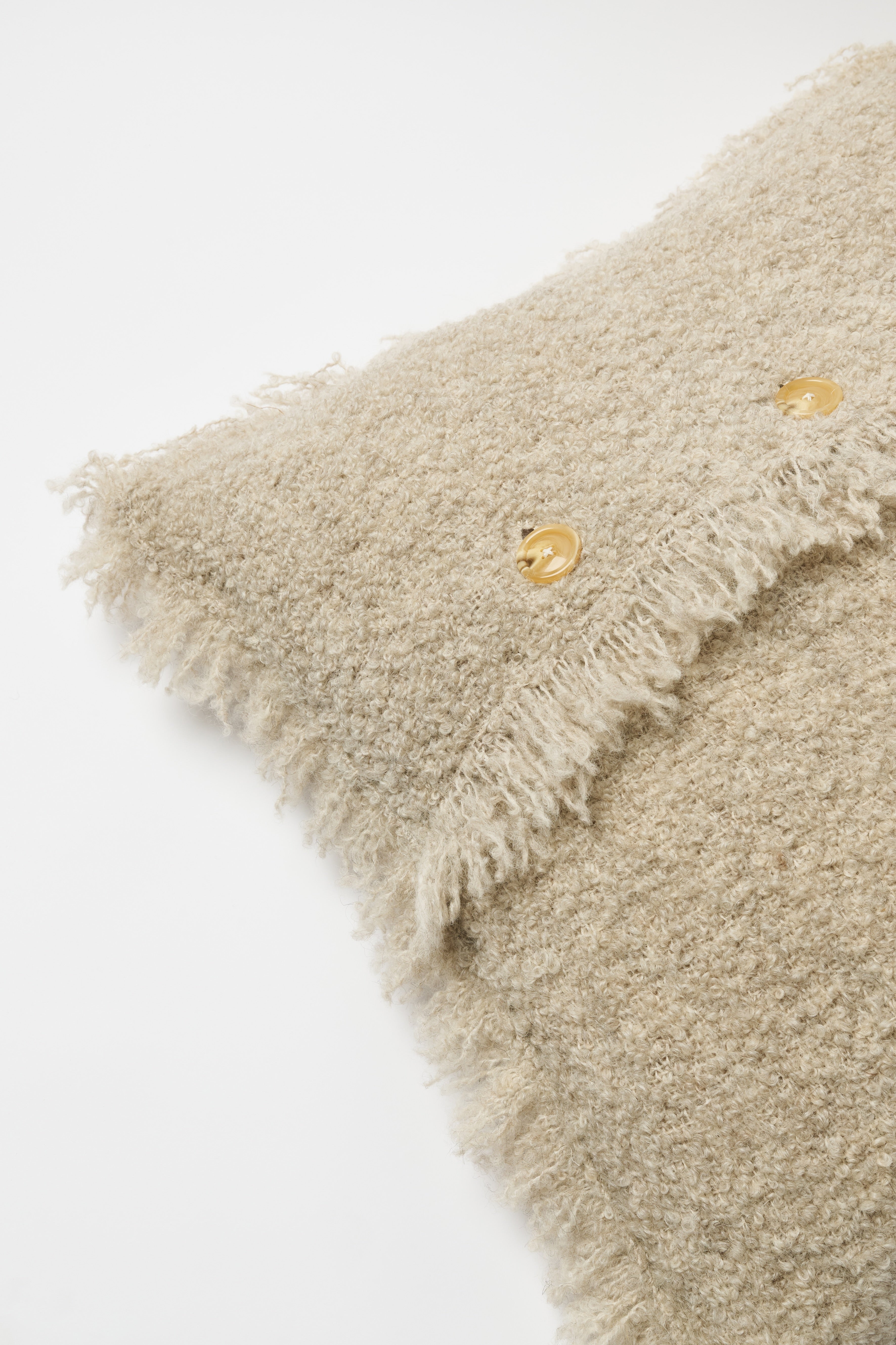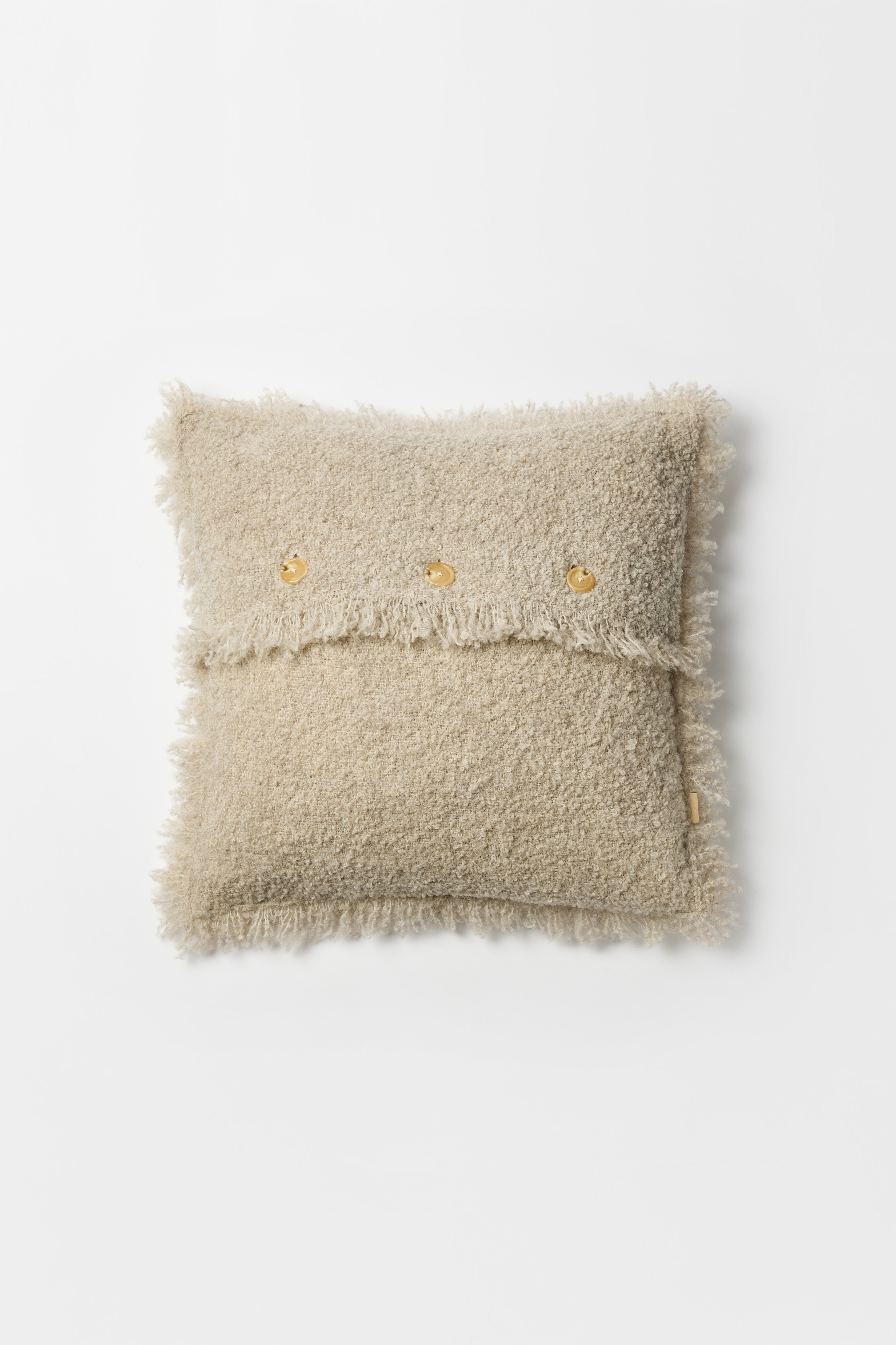 Crafted from the finest natural wool, our cushions feature short fringes around all edges, elegant backside buttons, and a recycled filling for a sustainable touch. With its soft texture and timeless design, it brings effortless bohemian charm to any space.