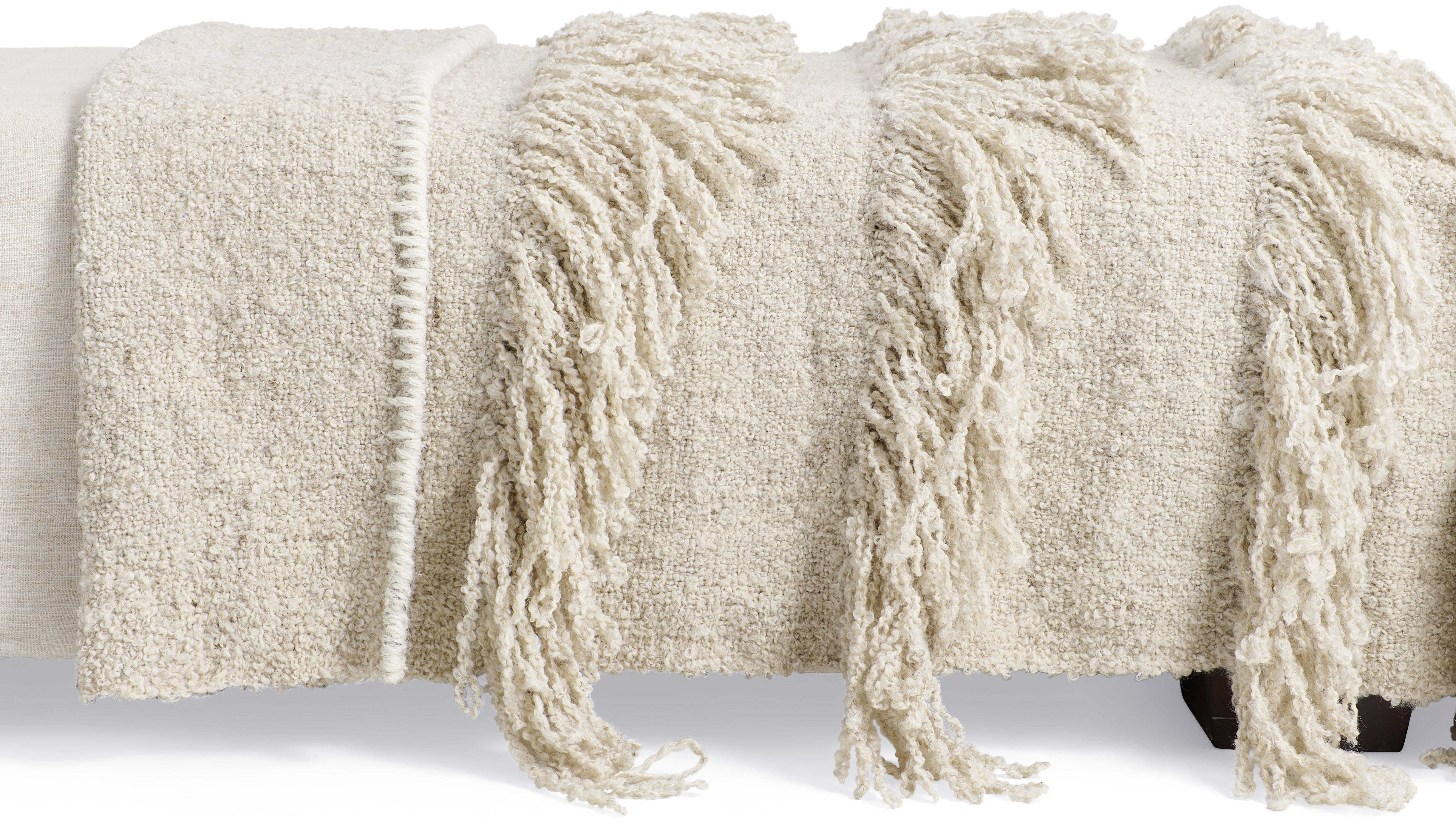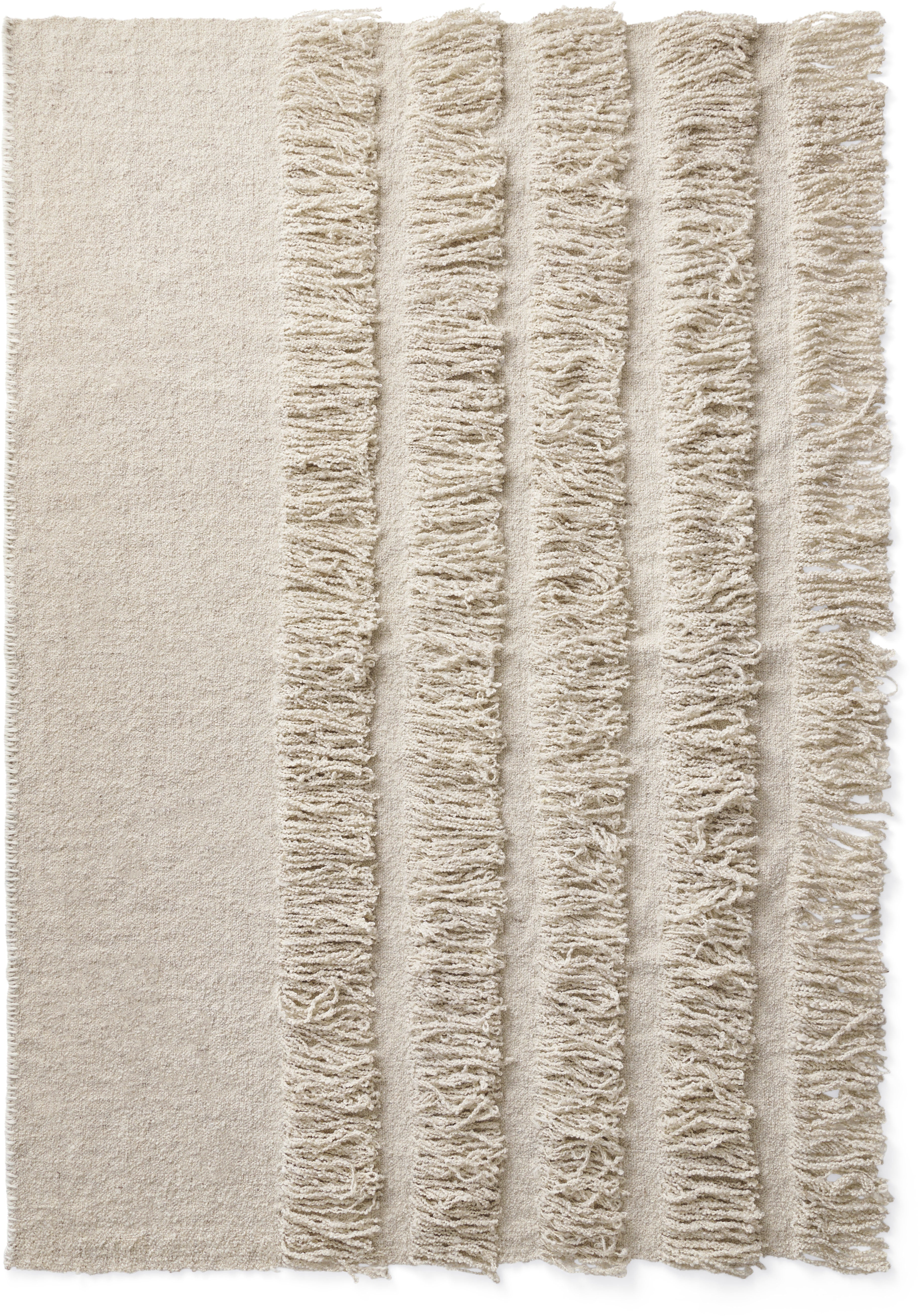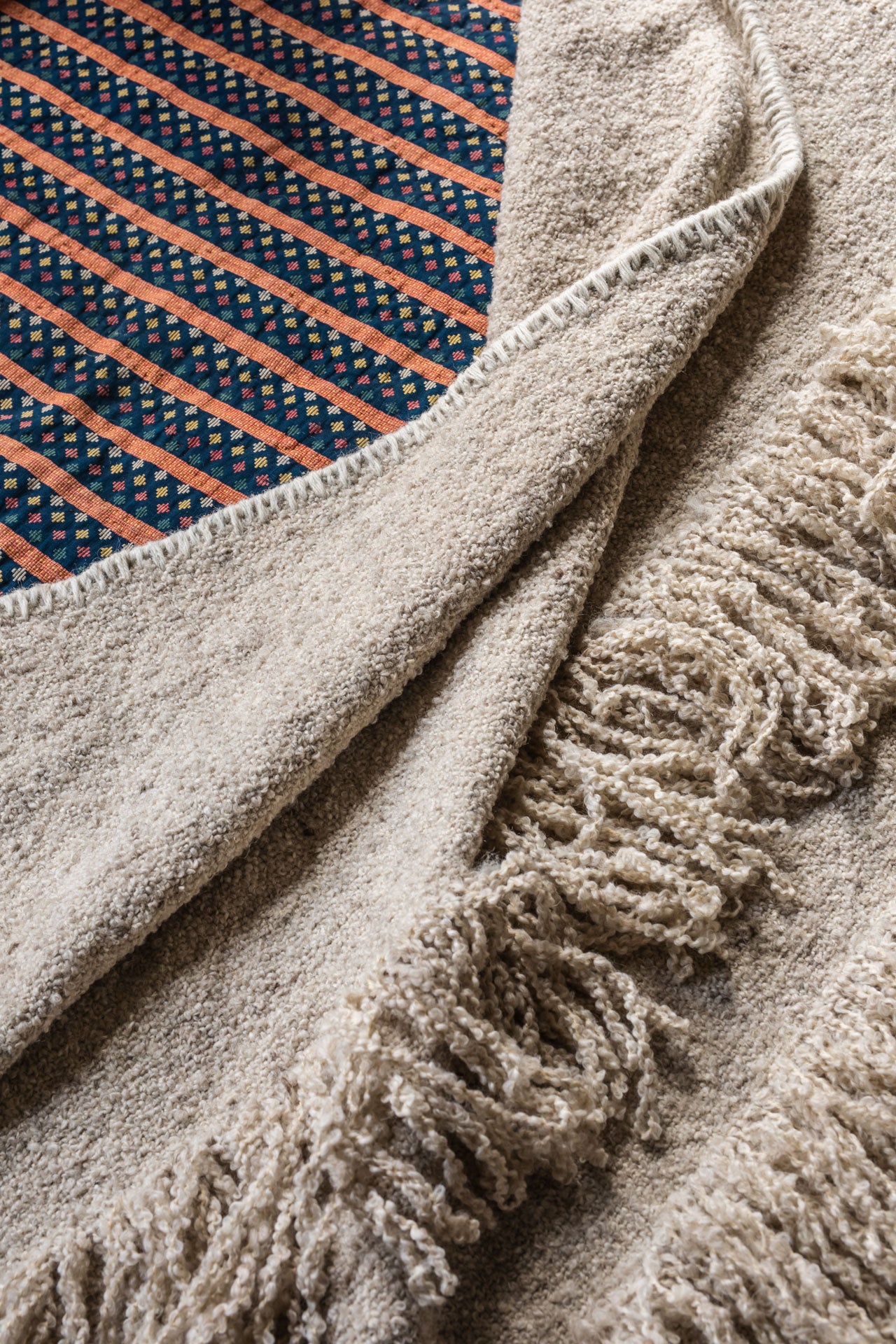 Coverlet no.02 is designed to embrace opulence and luxury. It’s rich fringes and hand-sewn decorative edge stitch make a bold statement, while the layered flat weaving adds an eye-catching dimension. Unlike traditional bedspreads, Cappelen Dimyr coverlets are designed to cover the lower half of the bed, adding a sophisticated and personal touch to your space.