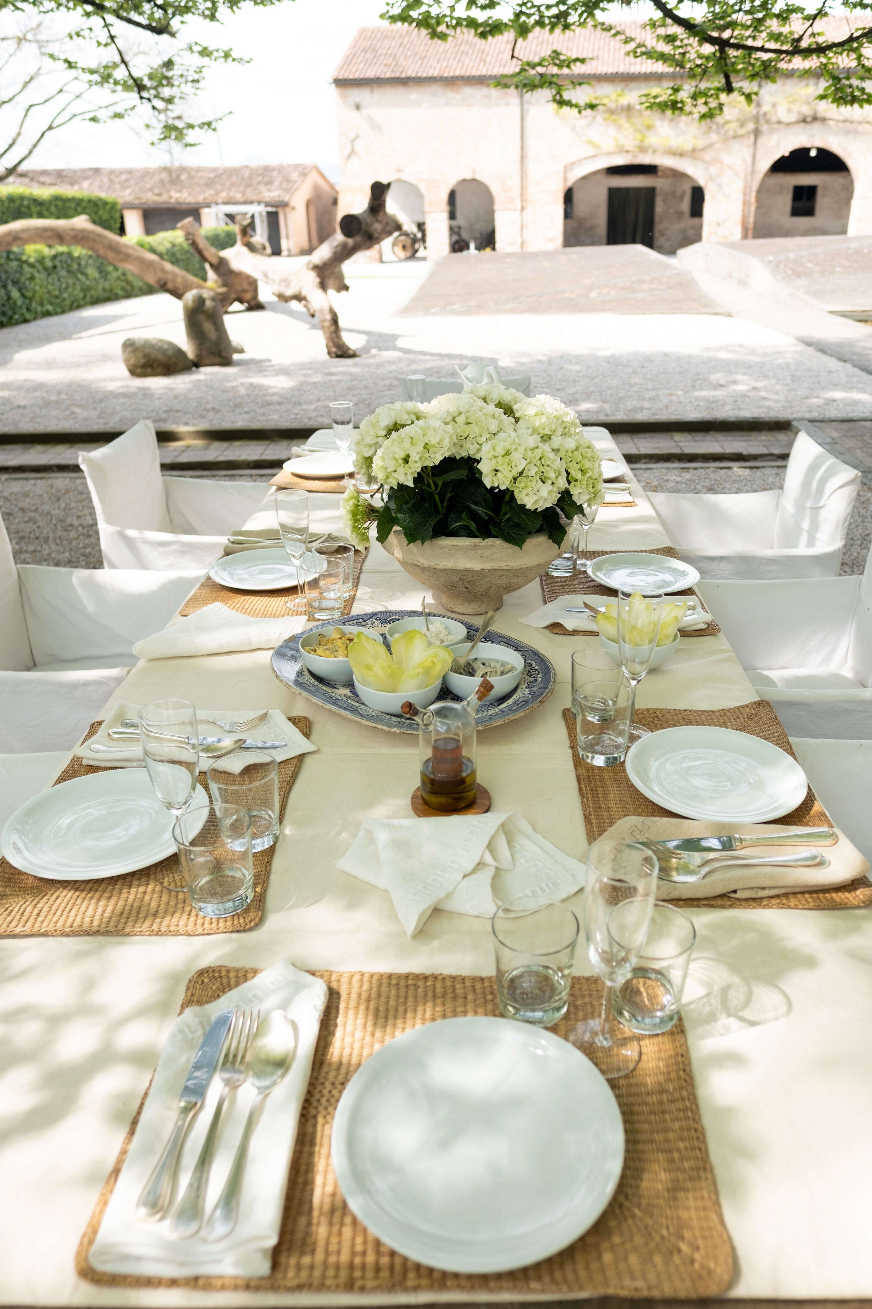 Frame Linen Tablecloth is crafted from 100% linen and features a graphic border motif inspired by ancient Greek design.