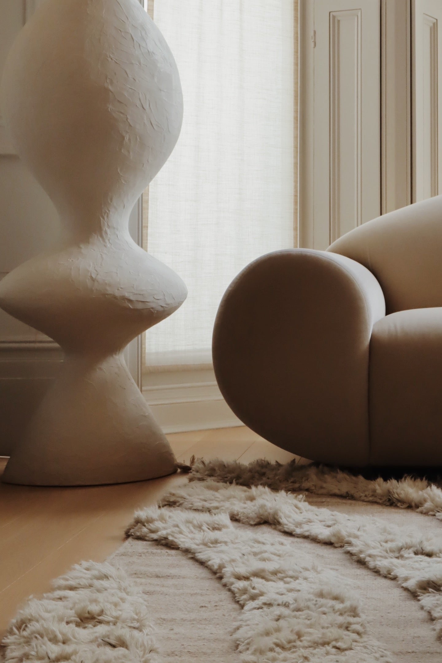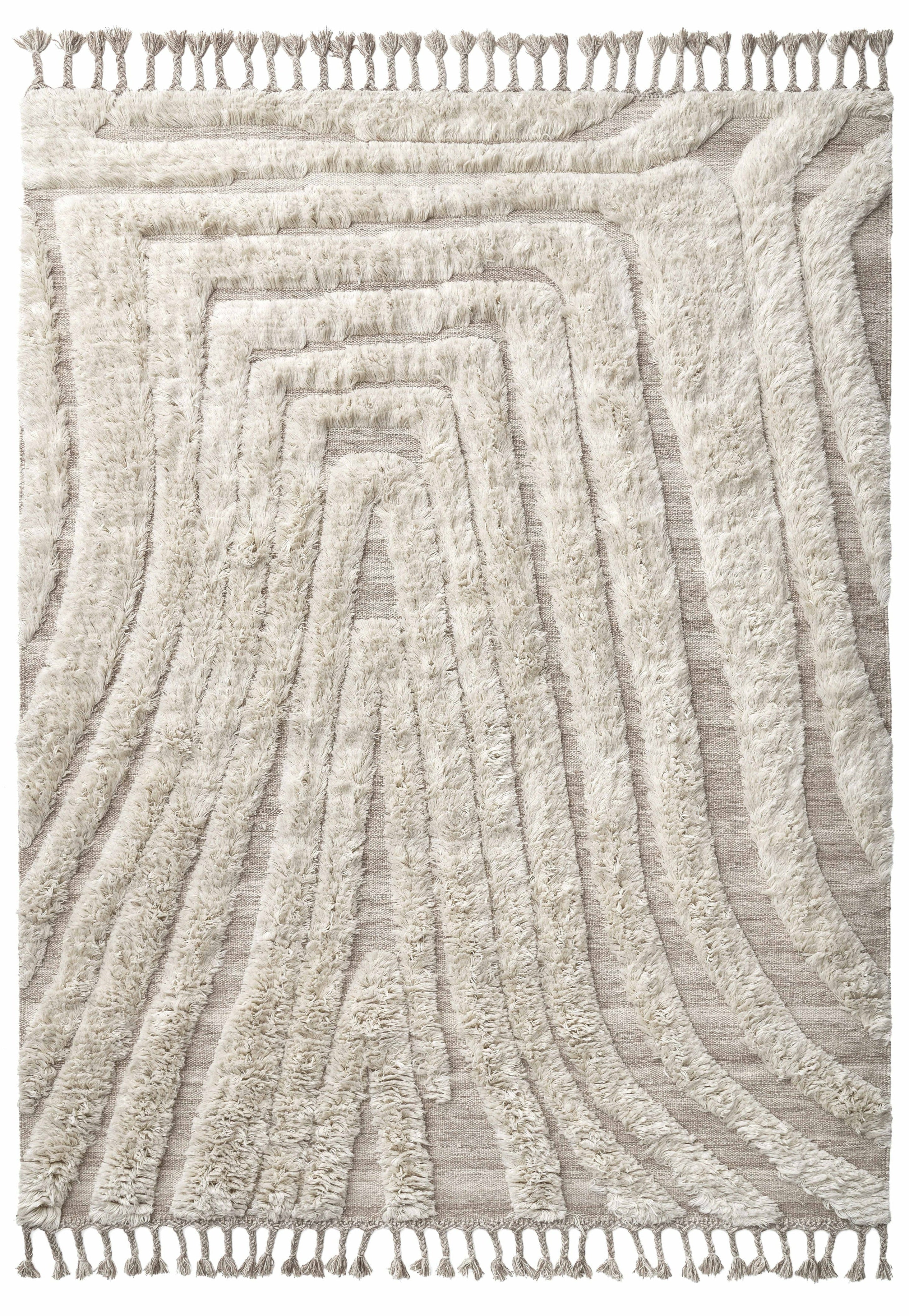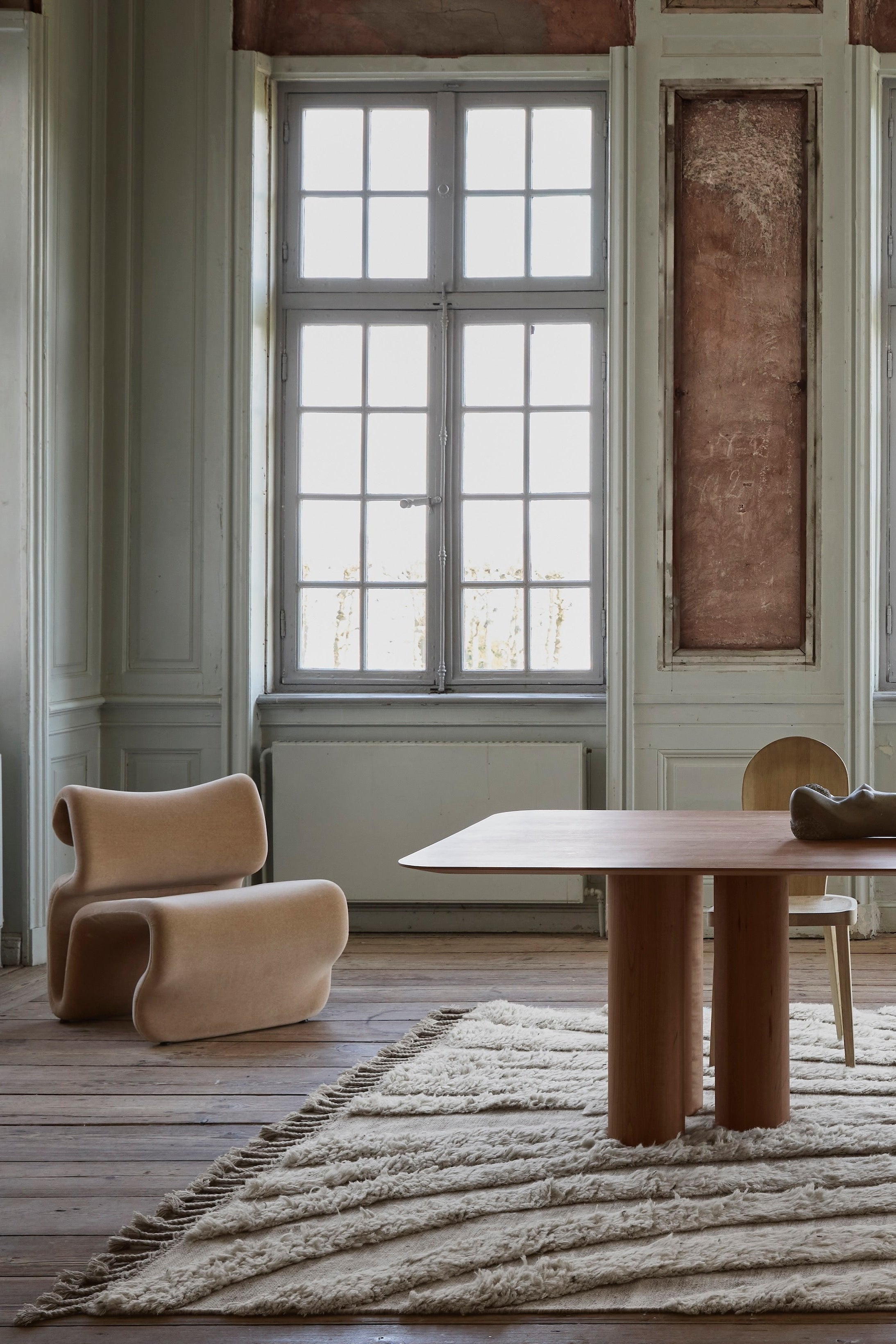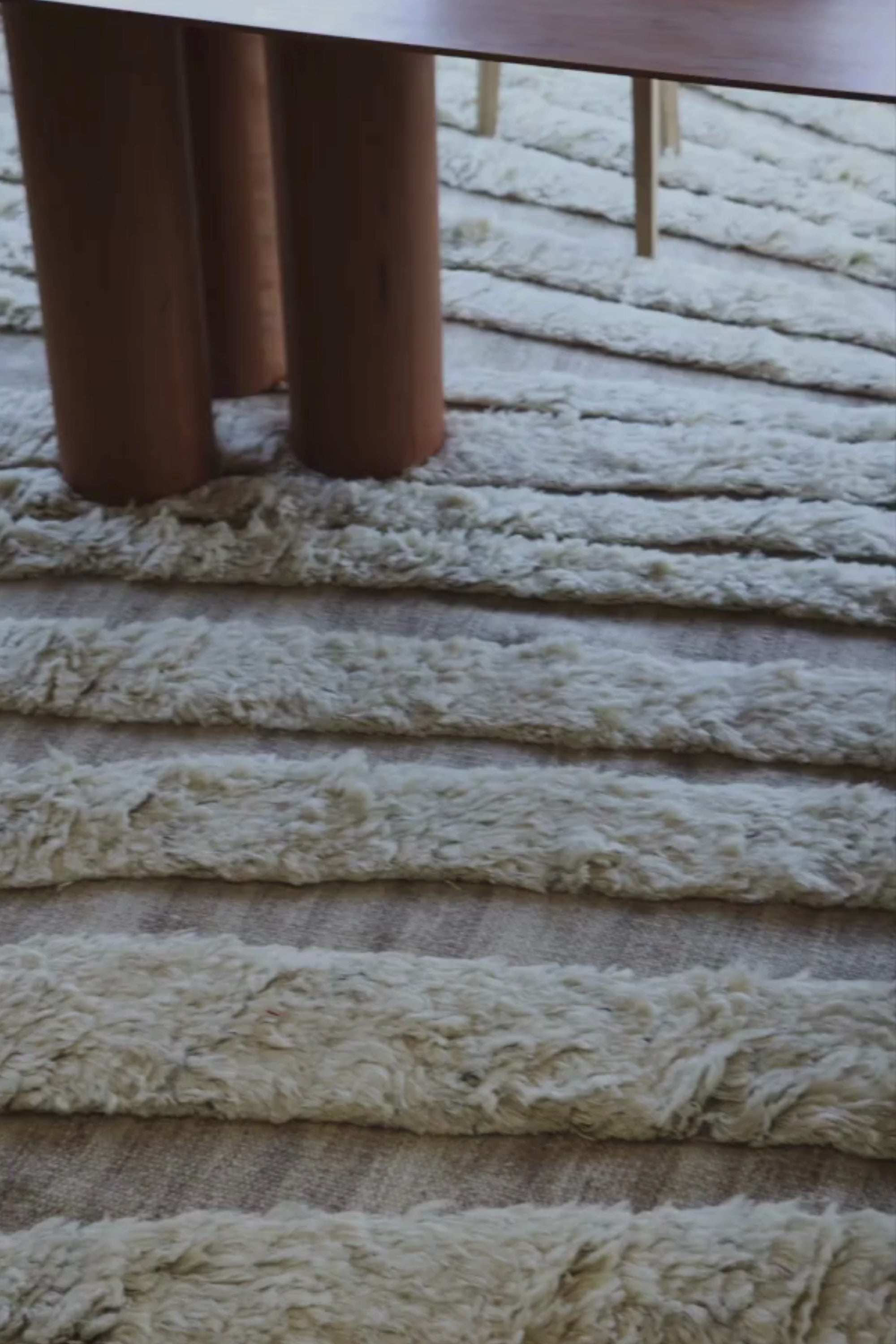 no.02 is a decorative hand-knotted rug in natural wool. The soft, irregular pattern creates a vivid and intriguing feel. A long fringe edge elevates the end line and adds an arty and ethnic detail.