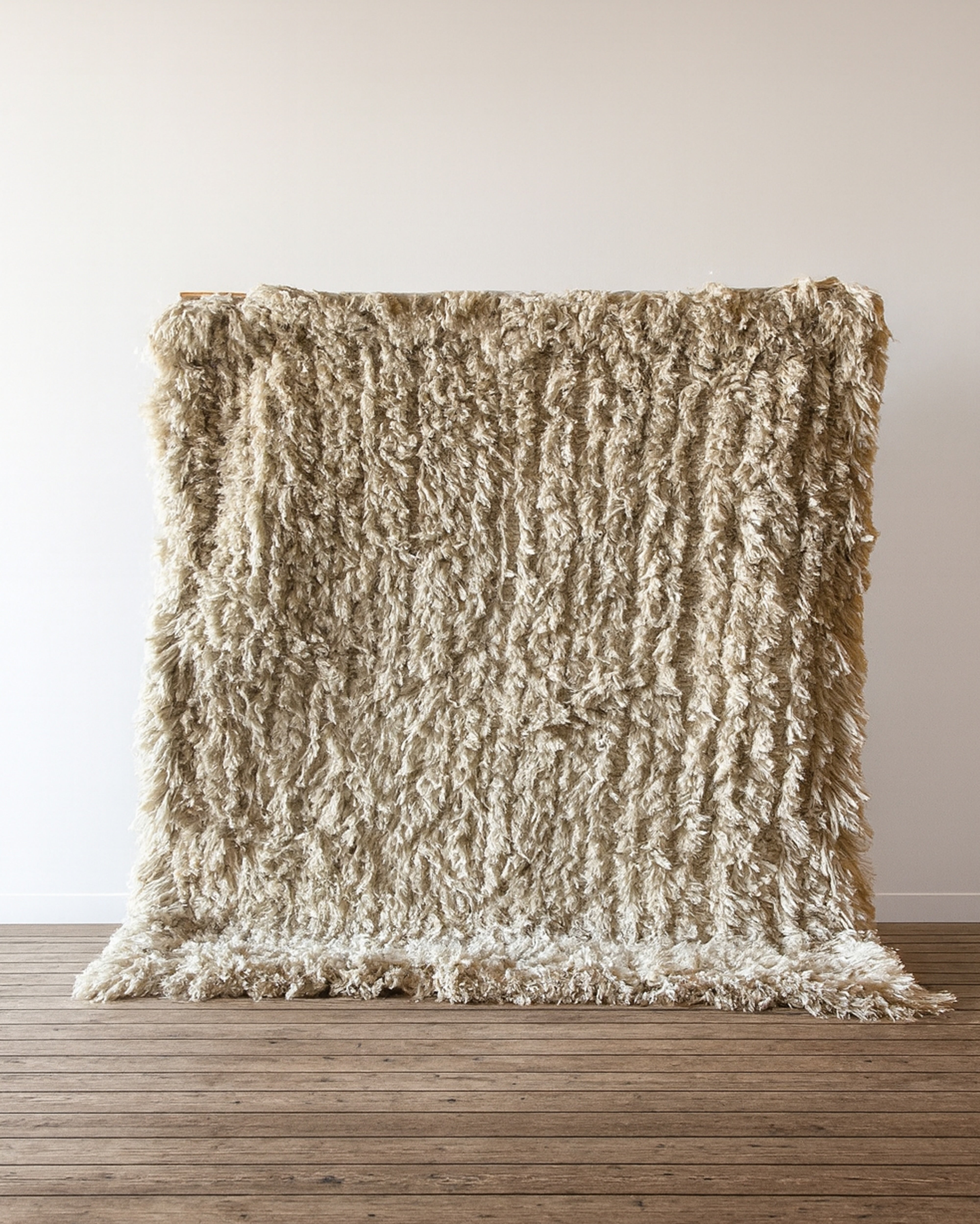 Full shaggy is a product development of a product that has never been launched. The rug is hand-knotted in a fully shaggy design. Made in a melange coloring but with the shade "shell", a soft off white color, as the main foundation.